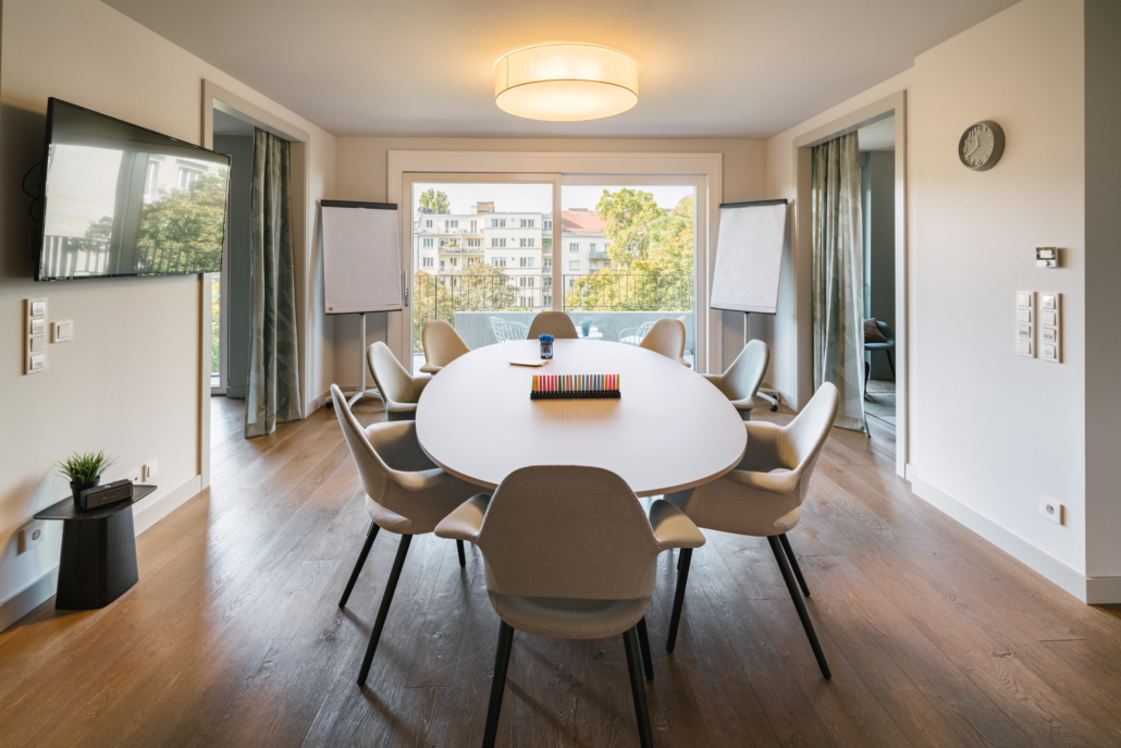 From super-fast wifi to smart TV, you will also find extensive presentation materials as well as 2 flipcharts and a high-quality magnetic board. The special highlight is the 10m2 balcony!